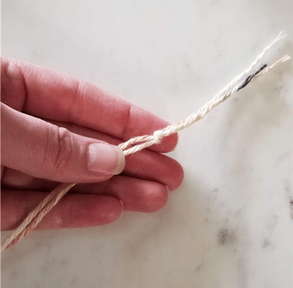 1. Hold yarn double and tie knot at ends to keep them together