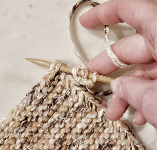 Knit 3 stitches. Do not turn work. Slide stitches to opposite end of needle and repeat, keeping yarn in back when you begin knitting the next row.