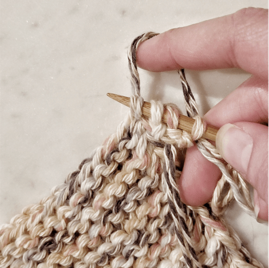 3. Knit 2 stitches. Slip third stitch purlwise with yarn in back. Do not turn work.