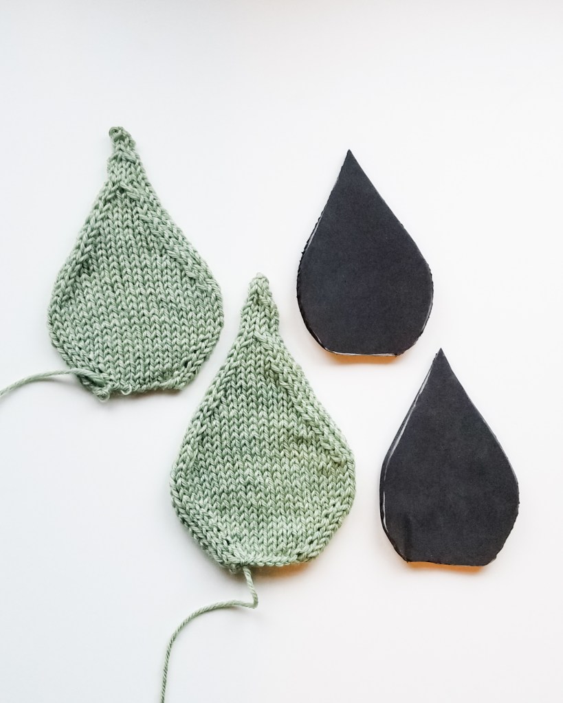Note how the EVA foam shapes are sized slightly smaller than the knitted ears.